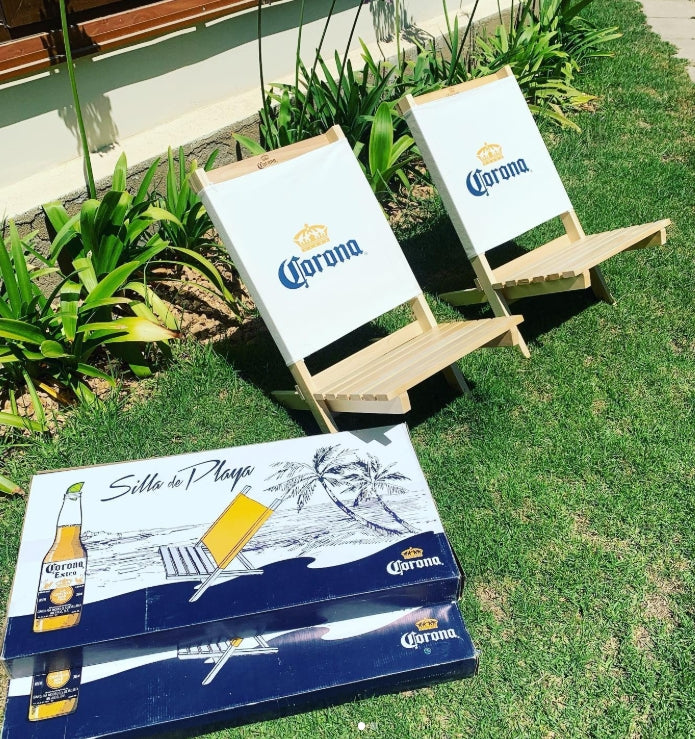 Dale estilo a tu verano con estas Sillas Playeras Corona de edición limitada. Son de madera, plegables y muy cómodas, ideales para llevar a la playa, el camping o disfrutar en tu terraza.